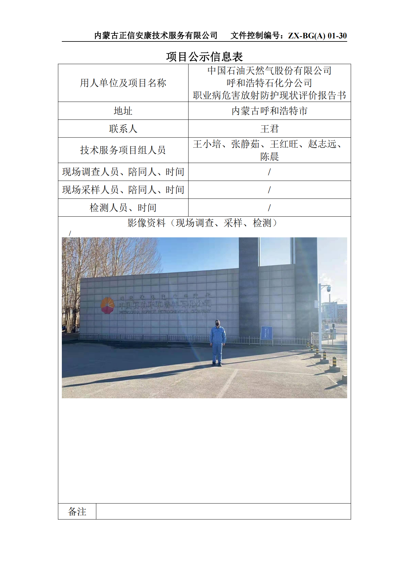 中國(guó)石油天然氣股份有限公司 呼和浩特石化分公司 職業(yè)病危害放射防護(hù)現(xiàn)狀評(píng)價(jià)