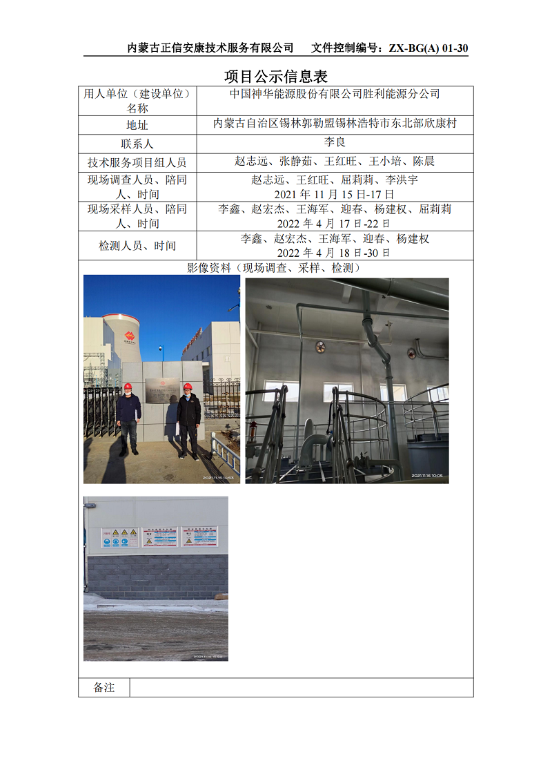 神華勝利電廠新建工程項目職業(yè)病危害控制效果評價項目公示信息表