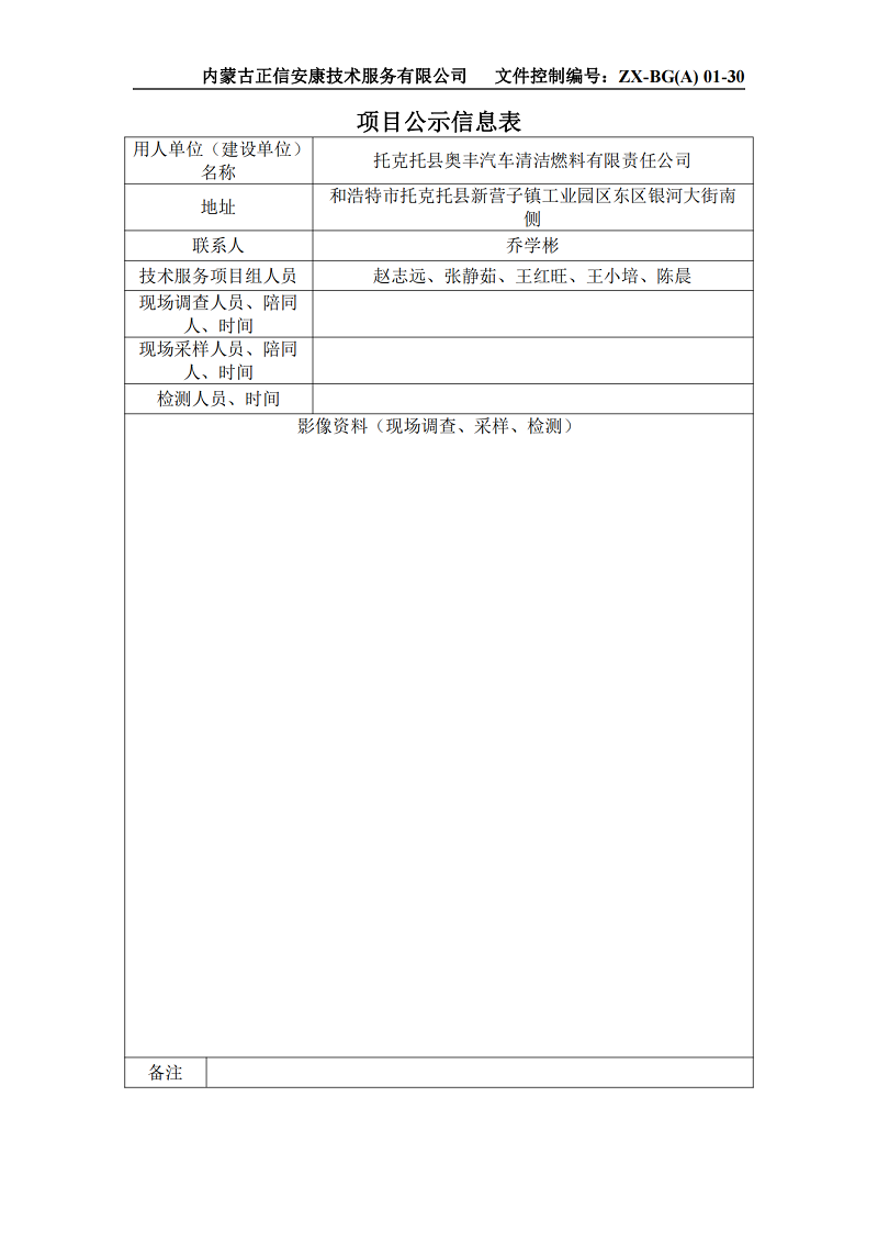托克托縣奧豐汽車清潔燃料有限責任公司園區(qū)加油加氣站項目職業(yè)病防護設施設計專篇項目公示信息表