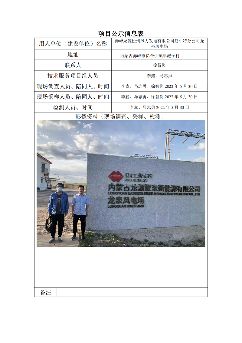 赤峰龍?jiān)此芍蒿L(fēng)力發(fā)電有限公司翁牛特分公司龍泉風(fēng)電場項(xiàng)目公示