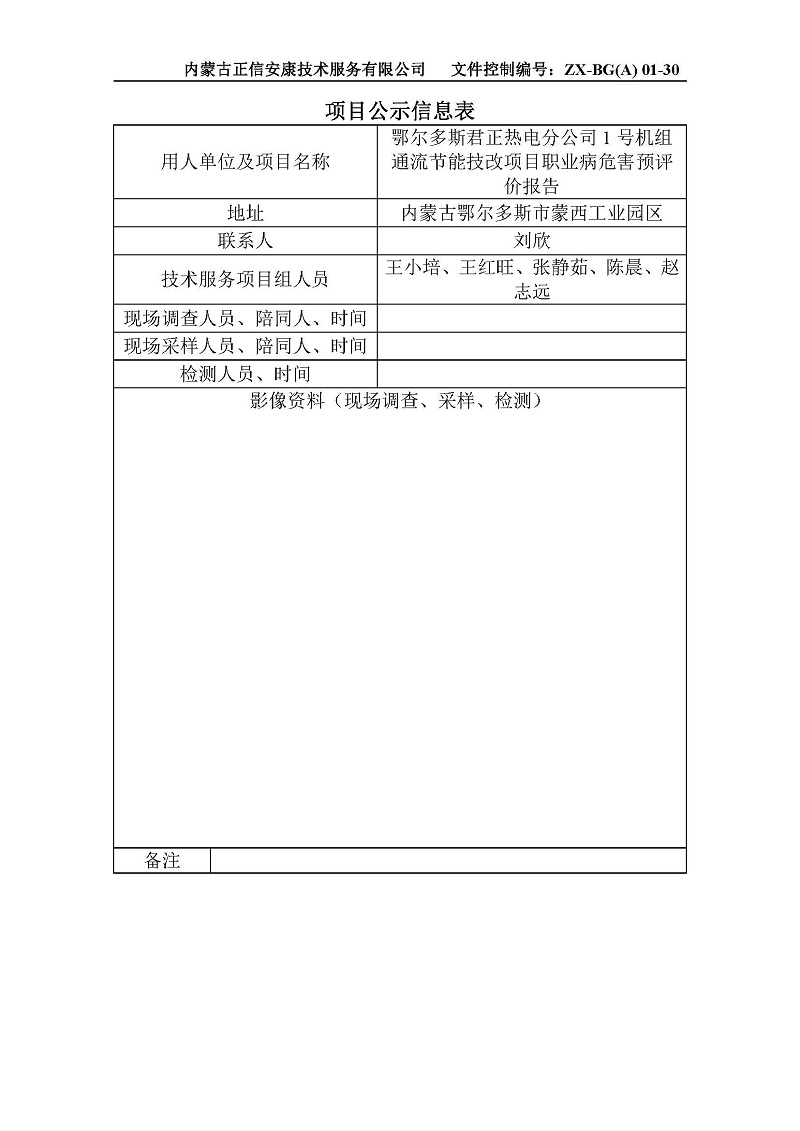 鄂爾多斯君正熱電分公司1號(hào)機(jī)組通流節(jié)能技改項(xiàng)目職業(yè)病危害預(yù)評(píng)價(jià)項(xiàng)目公示