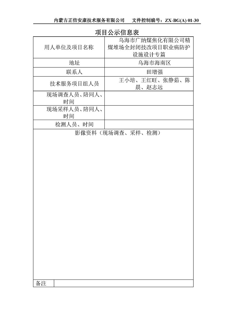 烏海市廣納煤焦化有限公司精煤堆場全封閉技改項目職業(yè)病防護設施設計專篇項目公示