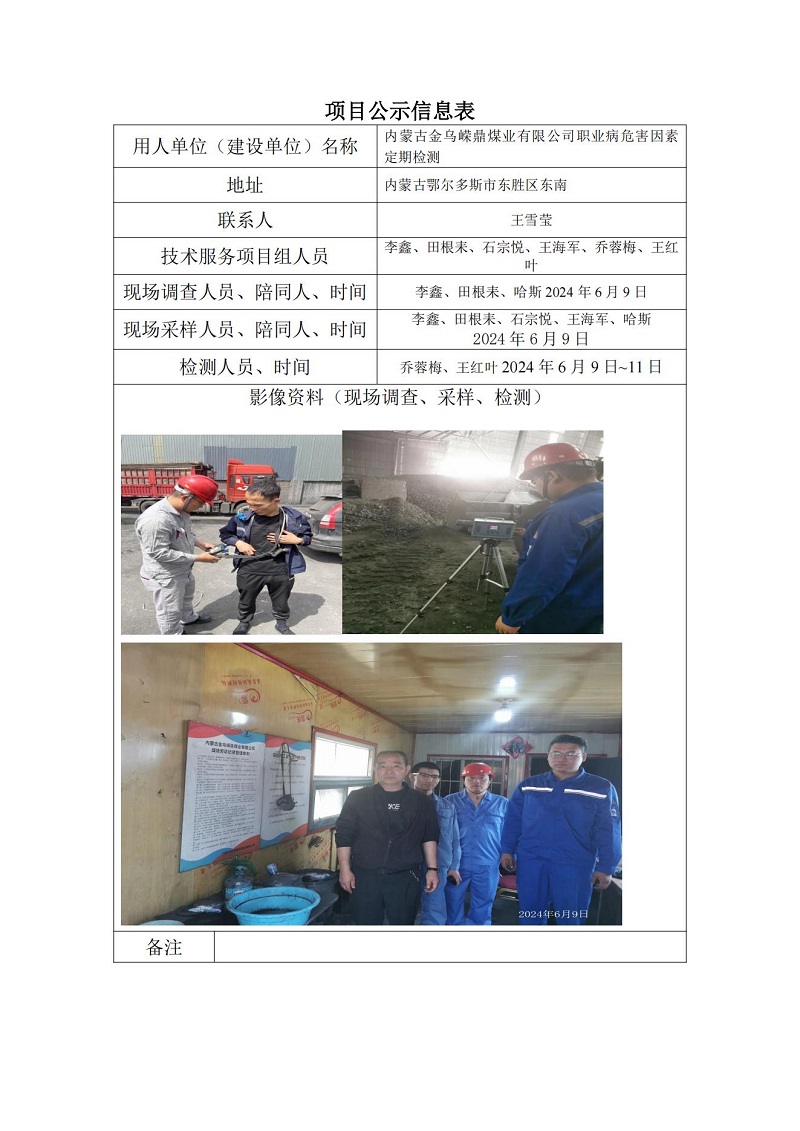 內(nèi)蒙古金烏嶸鼎煤業(yè)有限公司職業(yè)病危害因素定期檢測(cè)