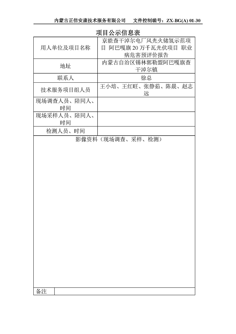 京能查干淖爾電廠風(fēng)光火儲(chǔ)氫示范項(xiàng)目 阿巴嘎旗20萬千瓦光伏項(xiàng)目 職業(yè)病危害預(yù)評(píng)價(jià)報(bào)告