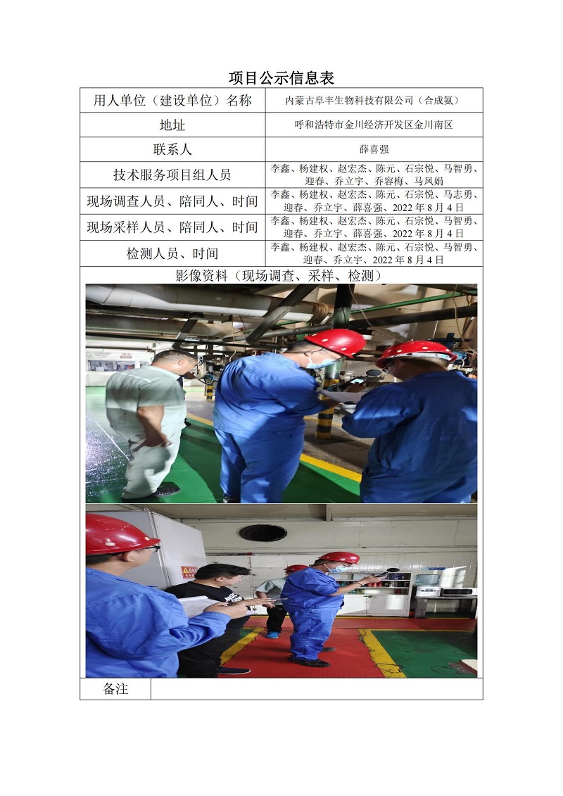 內(nèi)蒙古阜豐生物科技有限公司(合成氨)定期檢測項目公示