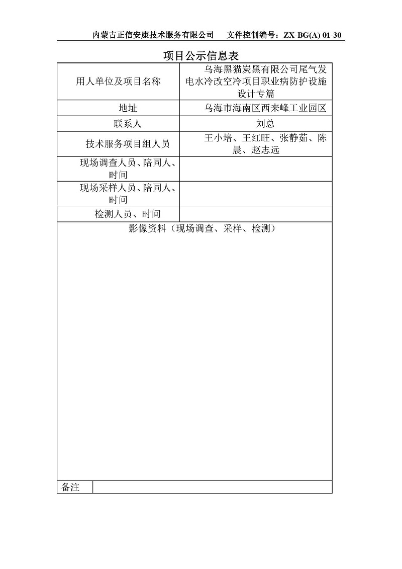 烏海黑貓?zhí)亢谟邢薰疚矚獍l(fā)電水冷改空冷項(xiàng)目職業(yè)病防護(hù)設(shè)施設(shè)計(jì)專篇