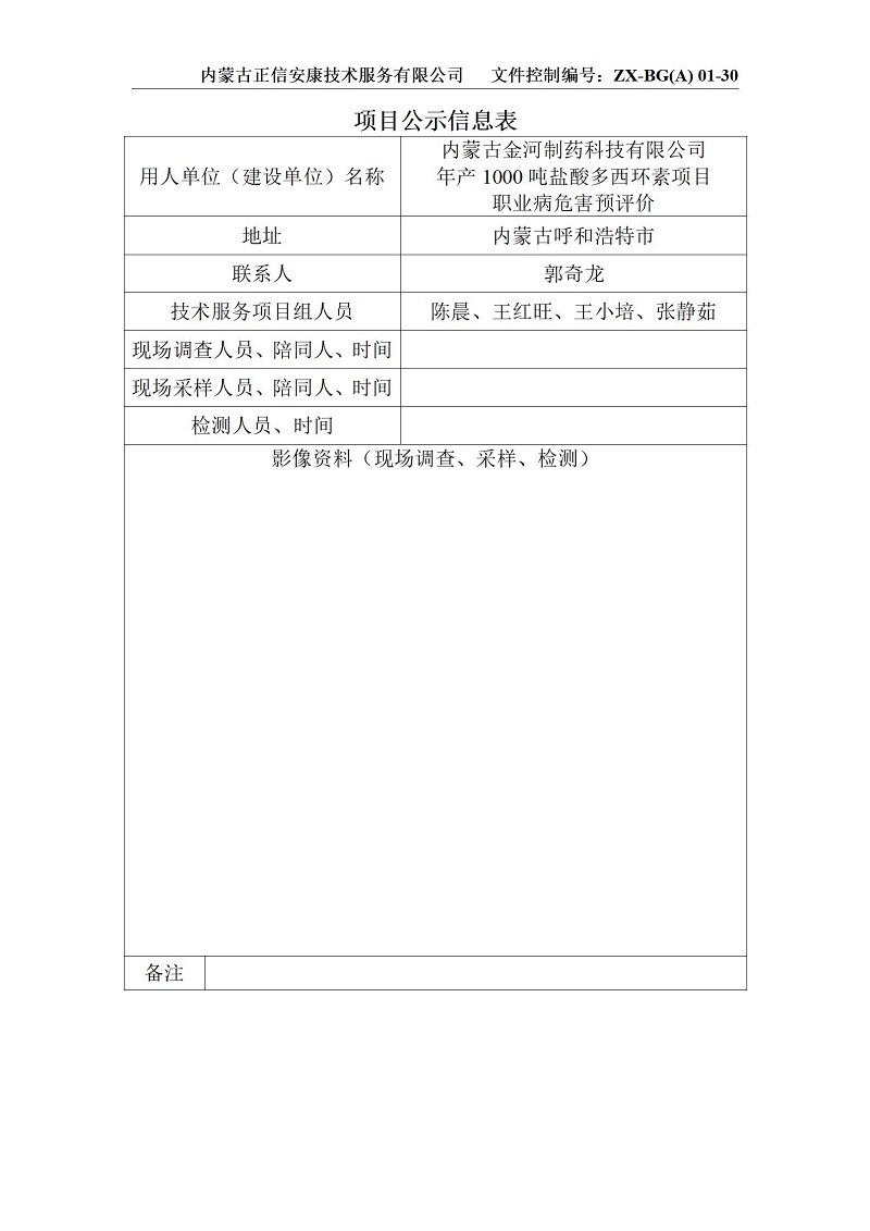 金河制藥1000噸鹽酸多西環(huán)素(預(yù)評(píng))項(xiàng)目公示信息表