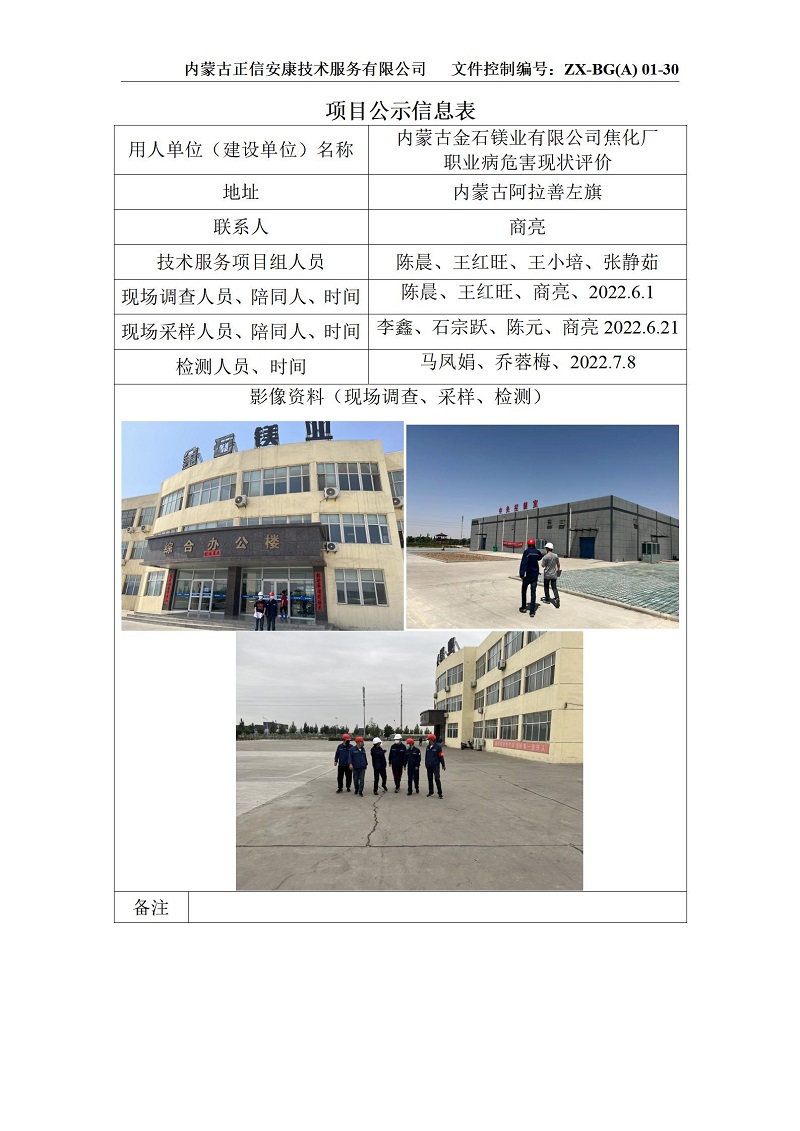 金石鎂業(yè)(焦化廠)項目現狀公示信息表