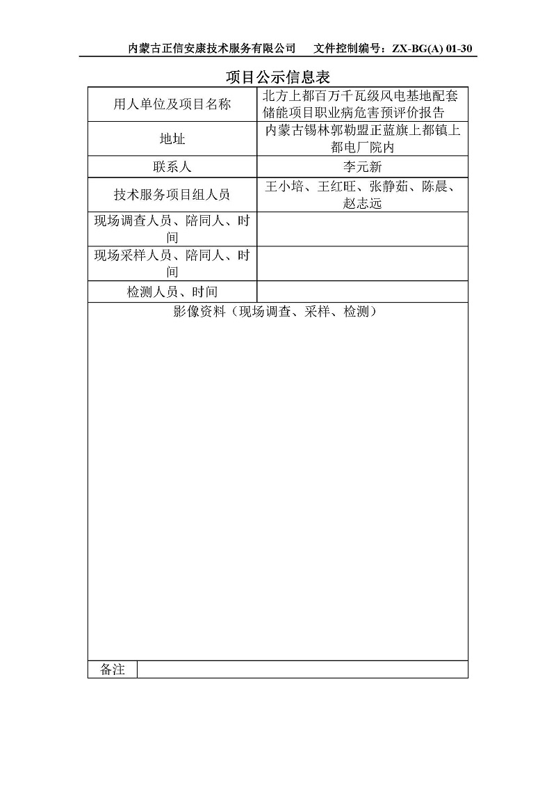 北方上都百萬(wàn)千瓦級(jí)風(fēng)電基地配套儲(chǔ)能項(xiàng)目職業(yè)病危害預(yù)評(píng)價(jià)報(bào)告公示信息表