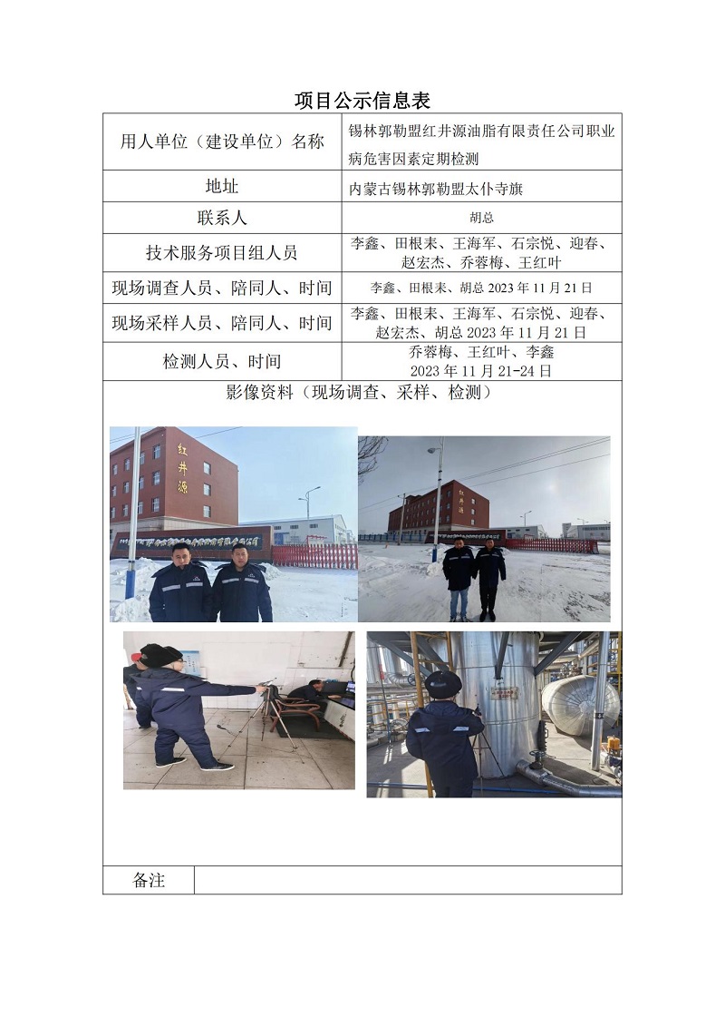 錫林郭勒盟紅井源油脂有限責(zé)任公司定期檢測