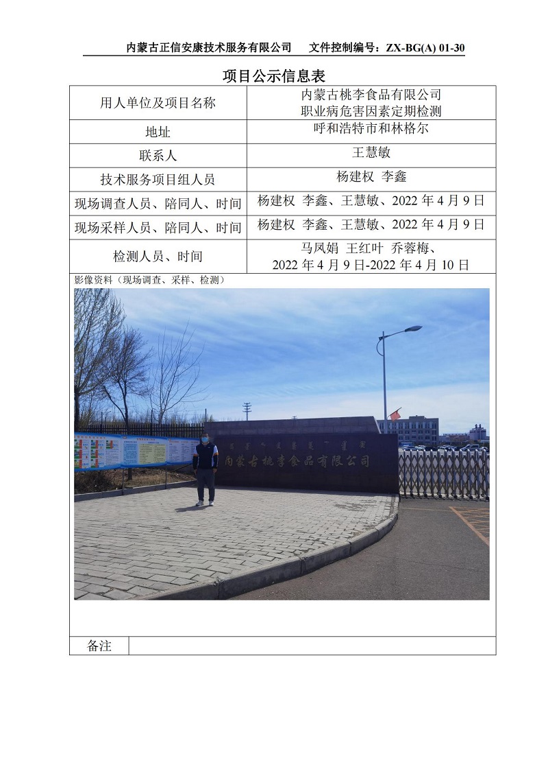 內(nèi)蒙古桃李食品有限公司定檢信息公示