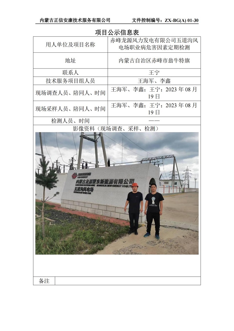 赤峰龍?jiān)达L(fēng)力發(fā)電有限公司五道溝風(fēng)電場(chǎng)職業(yè)病危害因素定期檢測(cè)