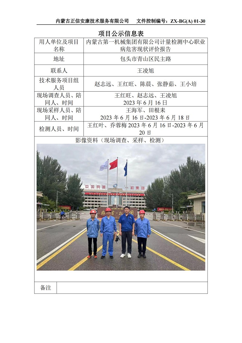 內(nèi)蒙古第一機(jī)械集團(tuán)有限公司計(jì)量檢測中心職業(yè)病危害現(xiàn)狀評價(jià)報(bào)告-項(xiàng)目公示信息表_
