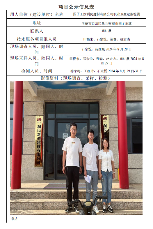 四子王旗利民建材有限公司職業(yè)衛(wèi)生定期檢測