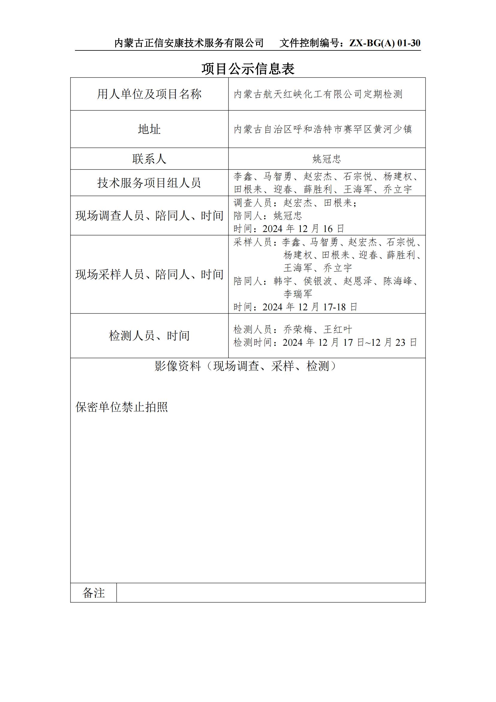 內(nèi)蒙古航天紅峽化工有限公司定期檢測