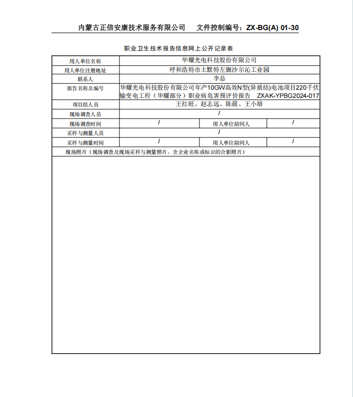 華耀光電科技股份有限公司年產(chǎn)10GW高效N型(異質(zhì)結(jié))電池項目220千伏 輸變電工程(華耀部分)職業(yè)病危害預(yù)評價報告