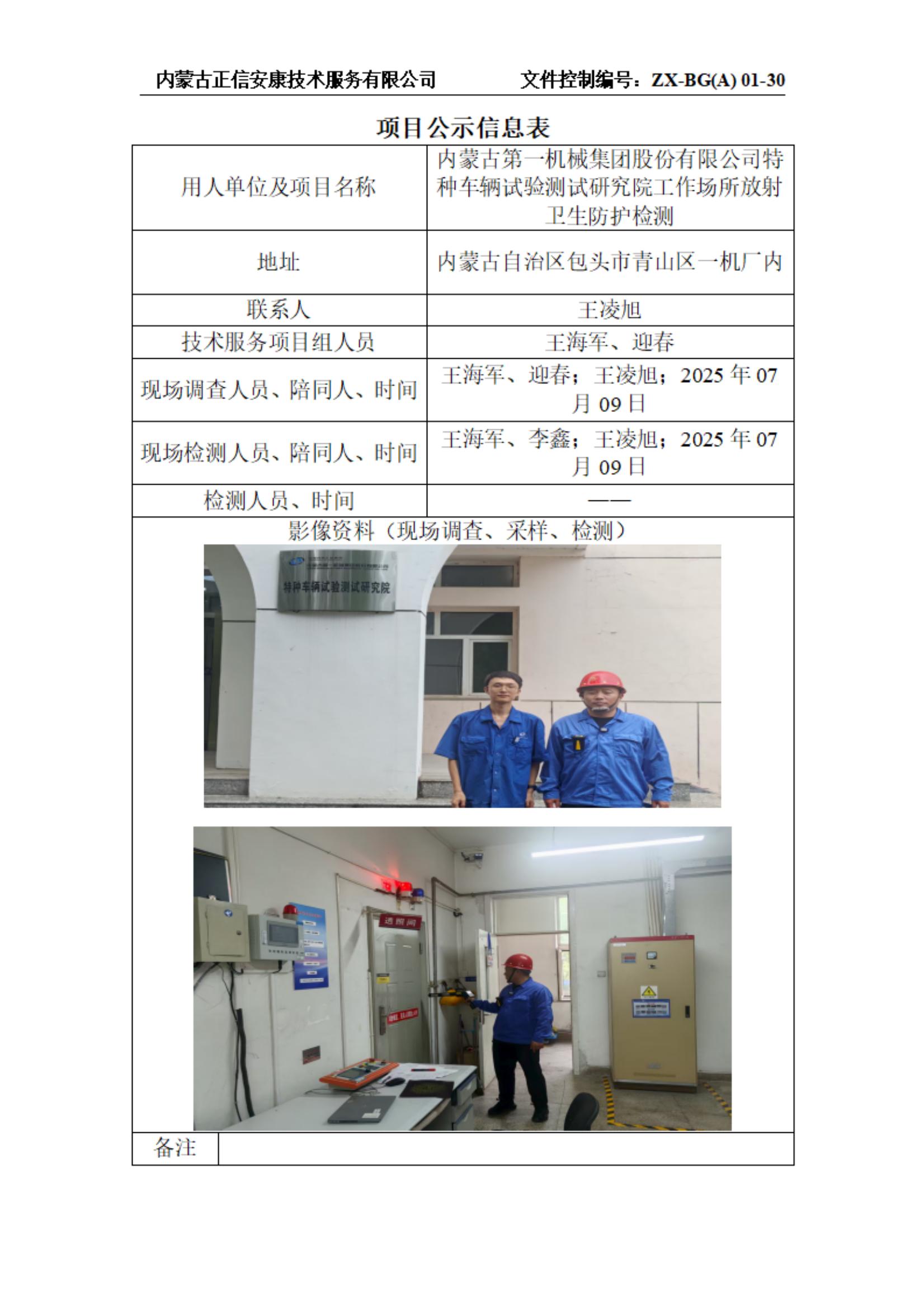 內(nèi)蒙古第一機(jī)械集團(tuán)股份有限公司特種車輛試驗測試研究院工作場所放射 衛(wèi)生防護(hù)檢測